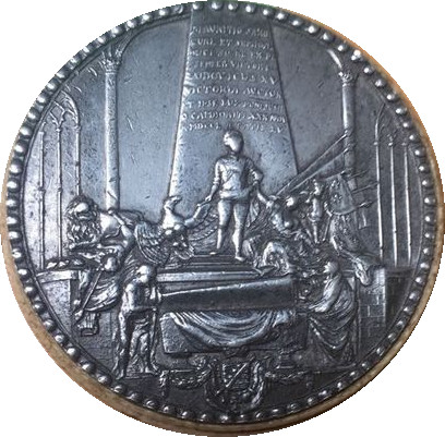 MAURITIO SAXO CURL ET SEMIGA DUCI SU RE EX P SEMPER VICTORI LUDOVICUS XV VICTORIA AVCTOR ET IPSE DUX PONI JUSI[?] O CAMBORITI XXX NOV A . MDCCL ÆTATIS LV