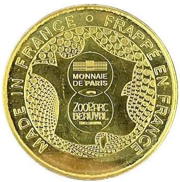 Опис: Стилізована карта Франції з логотипами Monnaie de Paris та Parc Zoologique, кожен з яких розміщений у колі.