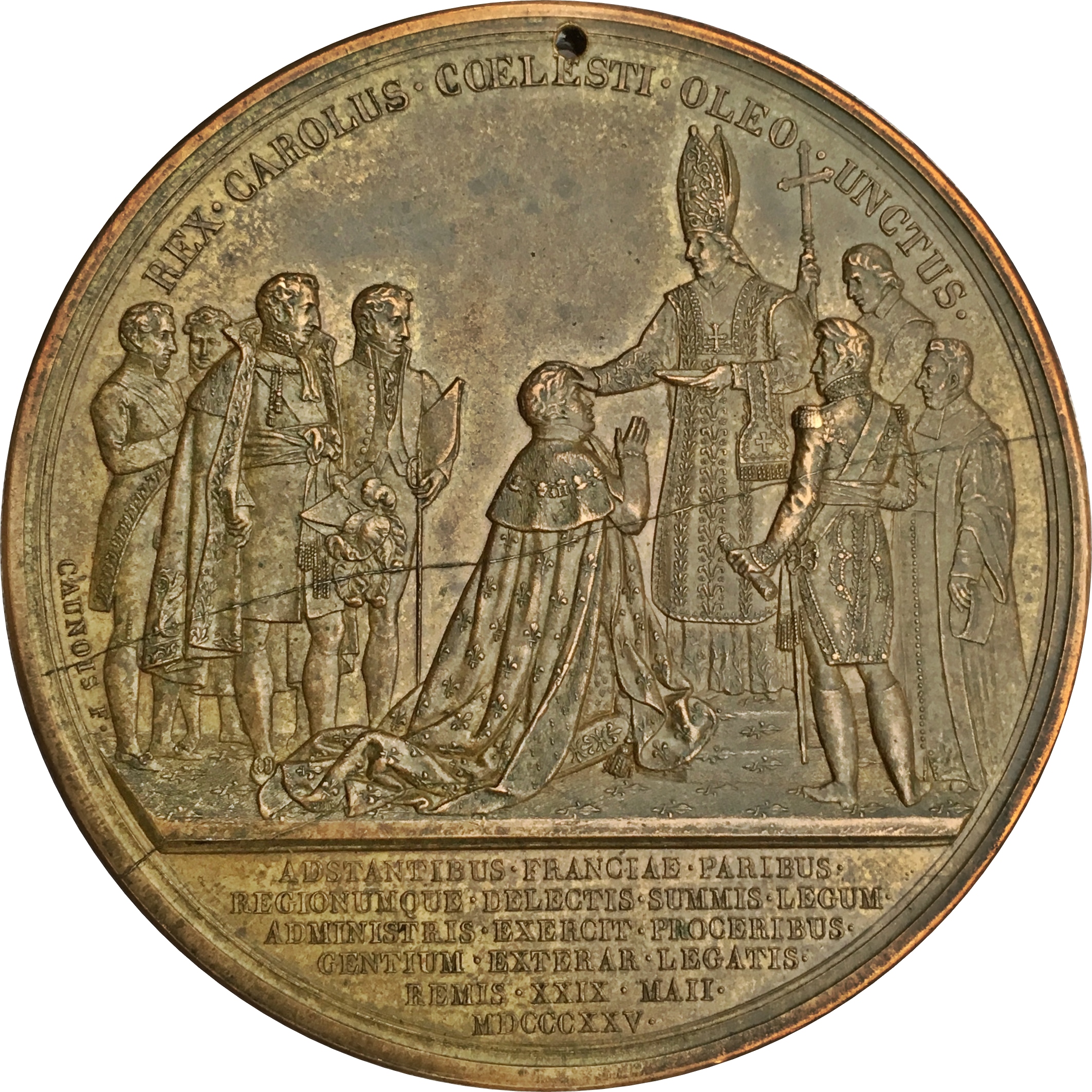 ADSTANTIBUS. FRANCIAE. PARIBUS // REGIONUMQUE. DELECTIS. SUMMIS. LEGUM // ADMINISTRIS. EXERCIT. PROCERIBUS // GENTIUM. EXTERAR. LEGATIS // REMIS. XXIX. MAII // MDCCCXXV.