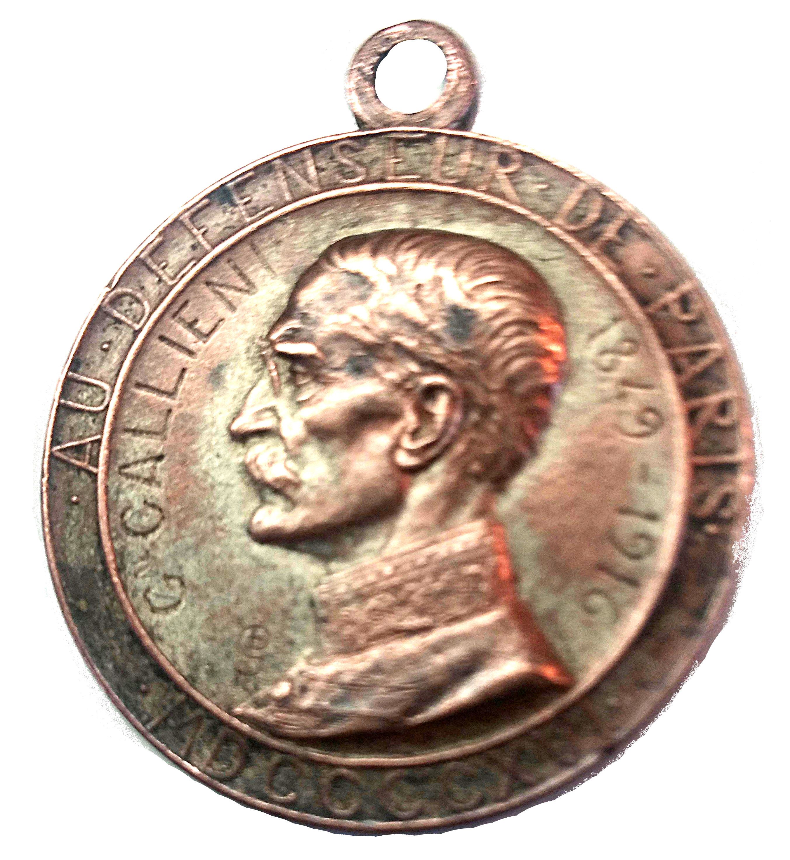 Опис: По колу зовні: « . AU . DEFENSEUR . DE . PARIS . / . MDCCCXVI . »; по колу всередині: «G.AL GALLIENI / 1849-1916»;
