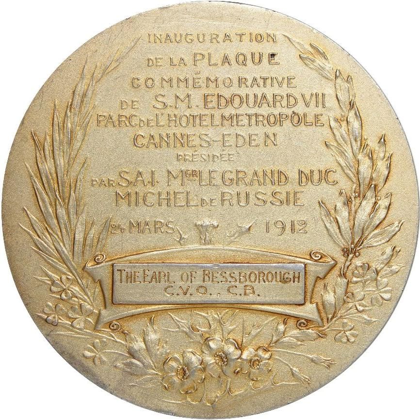Медаль (меморіальна дошка короля Едуарда VII; позолочене срібло) 1912 – 1912 Франція