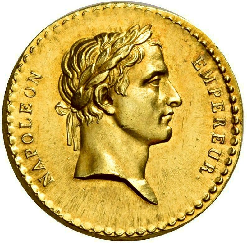 Опис: Голова в лавровому вінку праворуч від імператора Наполеона