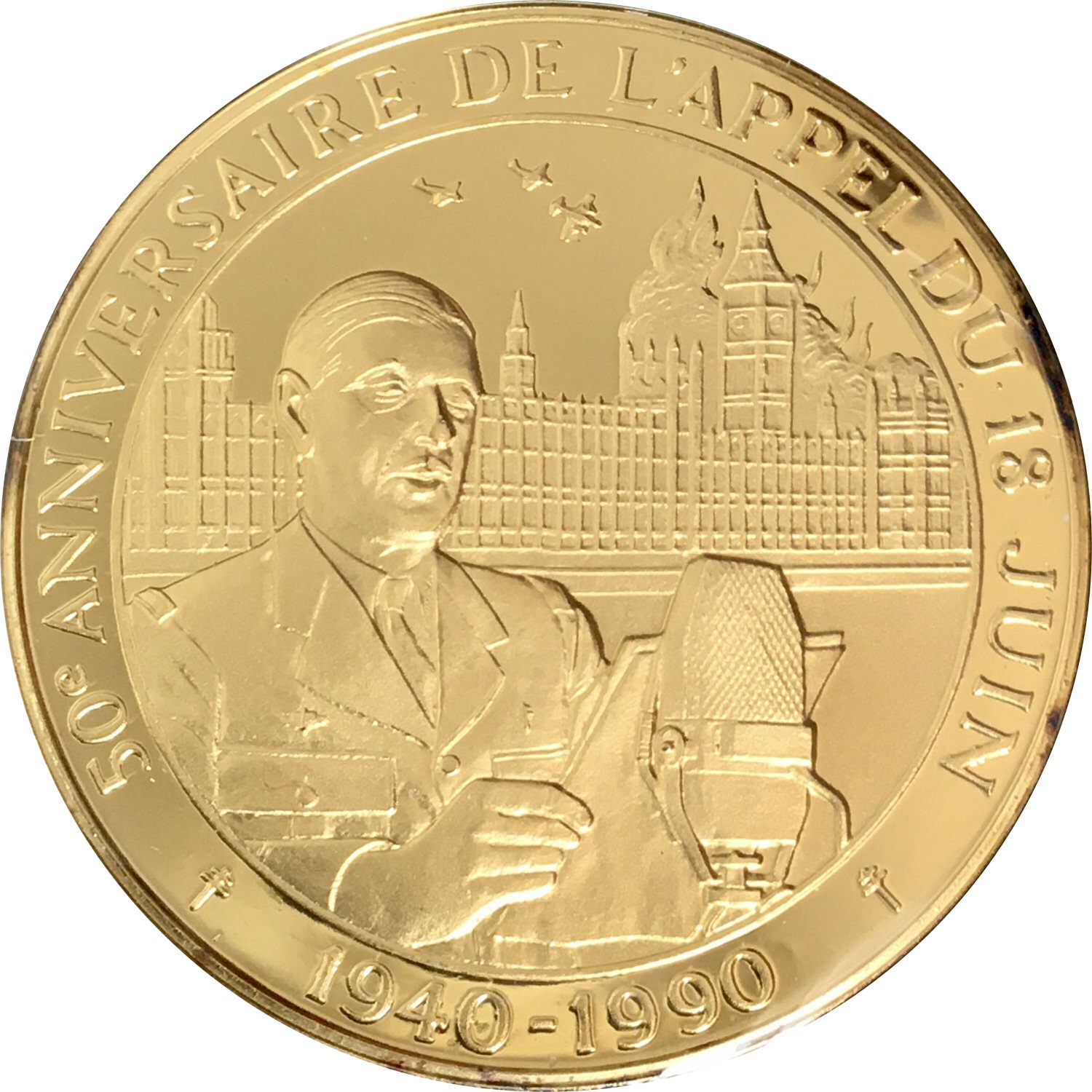 Медаль — Звернення від 18 червня 1940 року та сторіччя від дня народження Шарля де Голля 1990 – 1990 Франція