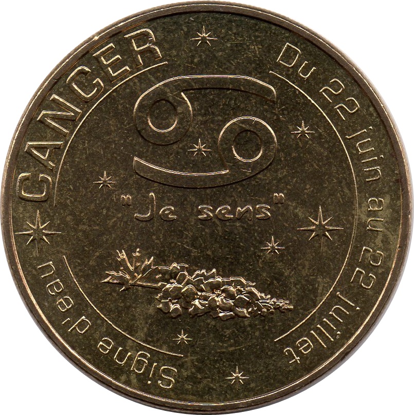 Назва: Туристична монета Monnaie de Paris — Рак (Signe d'eau — Du 22 juin au 22 juillet)