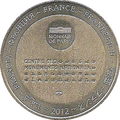 Опис: На периферії слово «Франція» написано вісьмома мовами. Символ Monnaie de Paris на 12-й годині, 2012 рік на 6-й годині. Текст у центрі оточений різними піктограмами Центру.