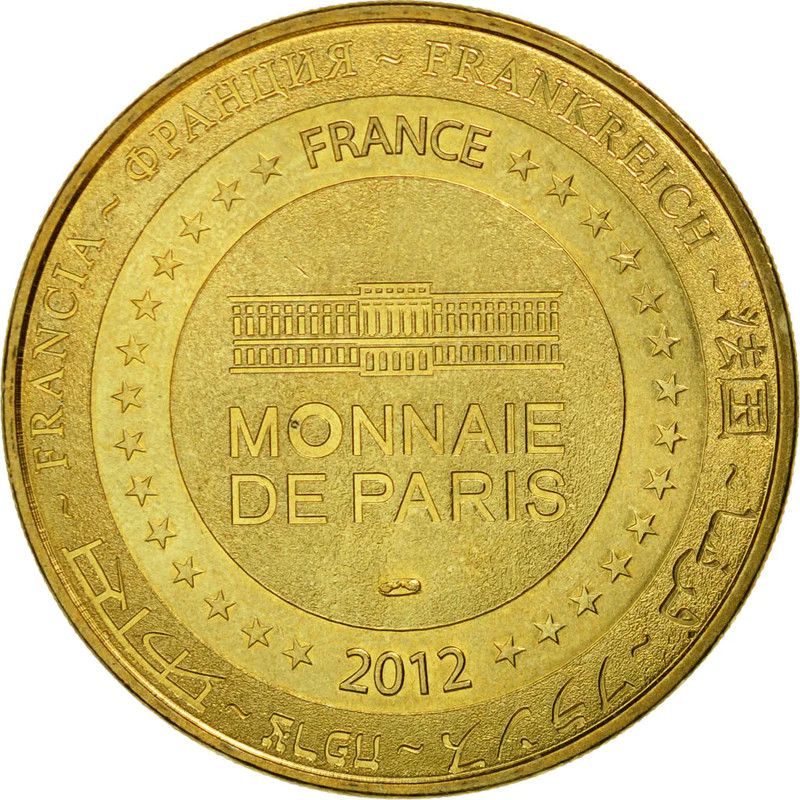 Опис: На периферії слово «Франція» написано вісьмома мовами. Франція на 12-й годині, 2012 рік на 6-й годині, все пов'язане 14 зірками праворуч і ліворуч. У центрі — будівля Монетного двору Парижа.