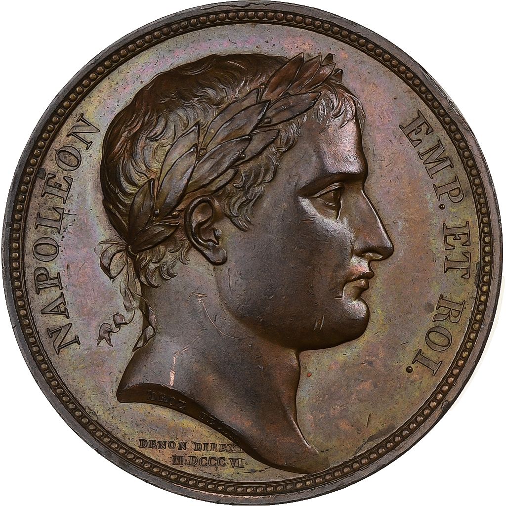 Опис: Наполеон верхи на коні, одягнений у старовинному стилі, перетинає міст, на якому його чекає армія з піднятими руками, щоб скласти присягу; зверху — Вікторія, що тримає пальмову гілку та корону; під мостом ліворуч — бог річки.