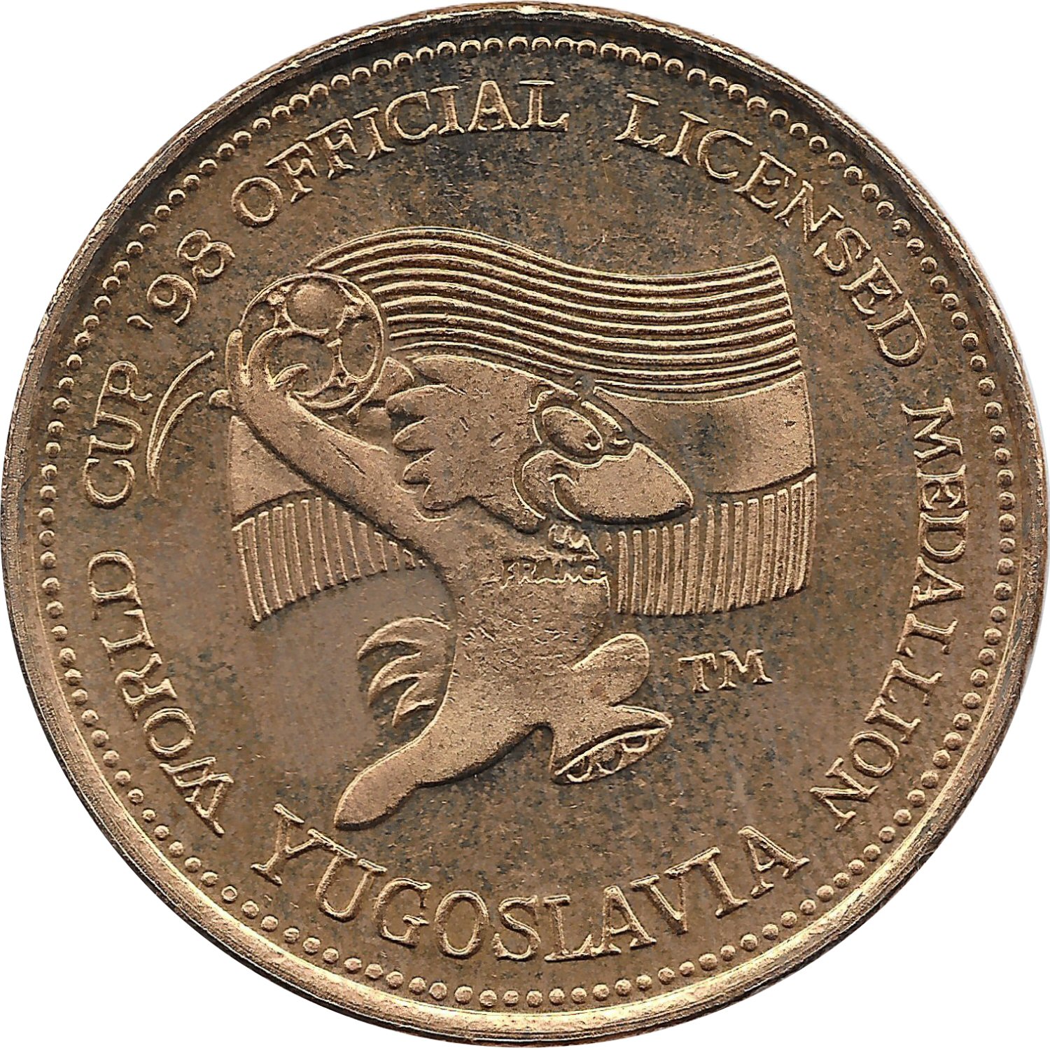 Назва: Офіційно ліцензований медальйон — Чемпіонат світу з футболу 1998 року у Франції (Югославія)