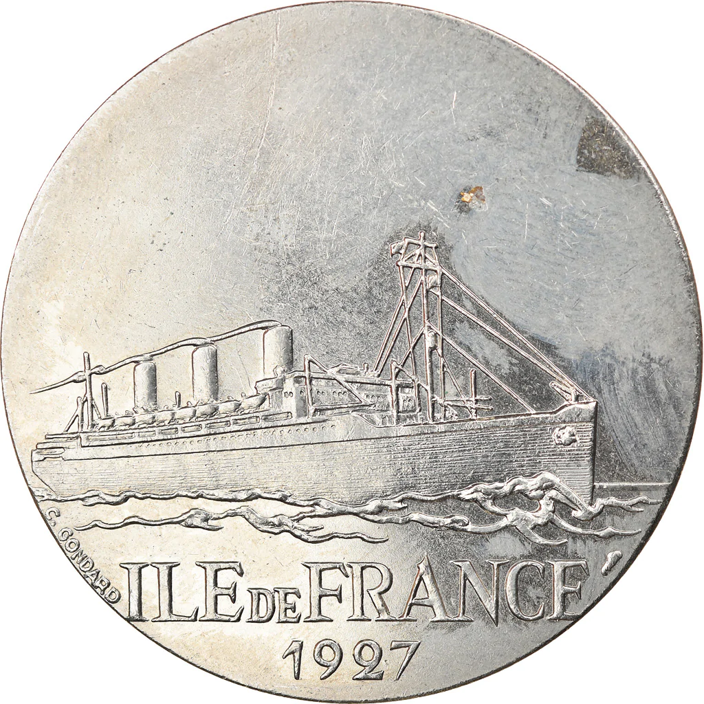 Опис: «Île de France», один із поштових кораблів, призначених для перевезення пасажирів і пошти, був закладений у жовтні 1924 року і спущений на воду в березні 1926 року на верфі Saint-Nazaire - Penhoët. «1927» відповідає даті її першого рейсу з Гавра до Нью-Йорка 22 червня 1927 року.