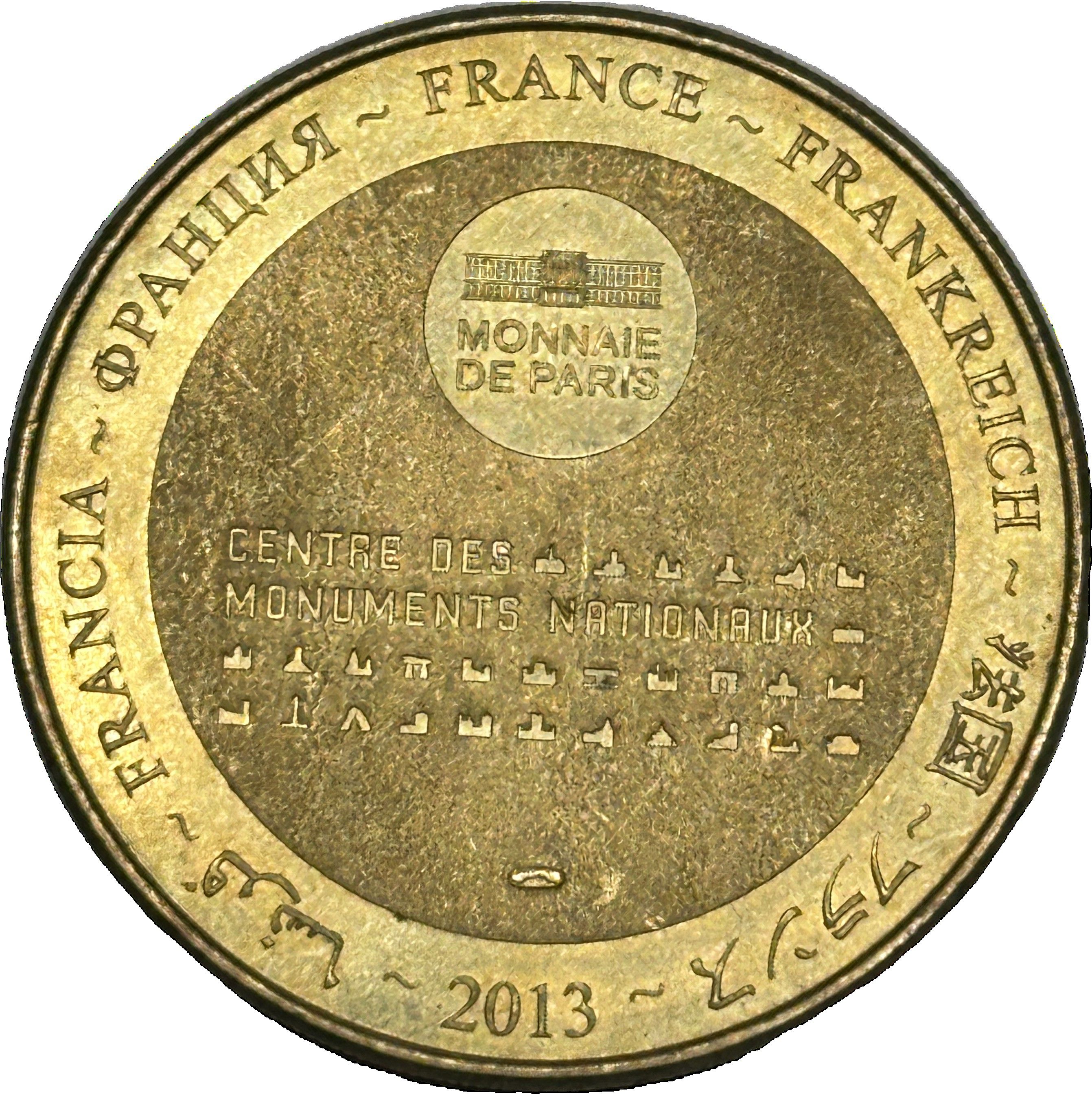 Опис: На периферії слово «Франція» написано вісьмома мовами. Франція на 12-й годині, 2013 рік на 6-й годині, все пов'язане 14 зірками праворуч і ліворуч. У центрі — будівля Monnaie de Paris. Слово «PARIS» має бути тонким для випуску 2014 року.