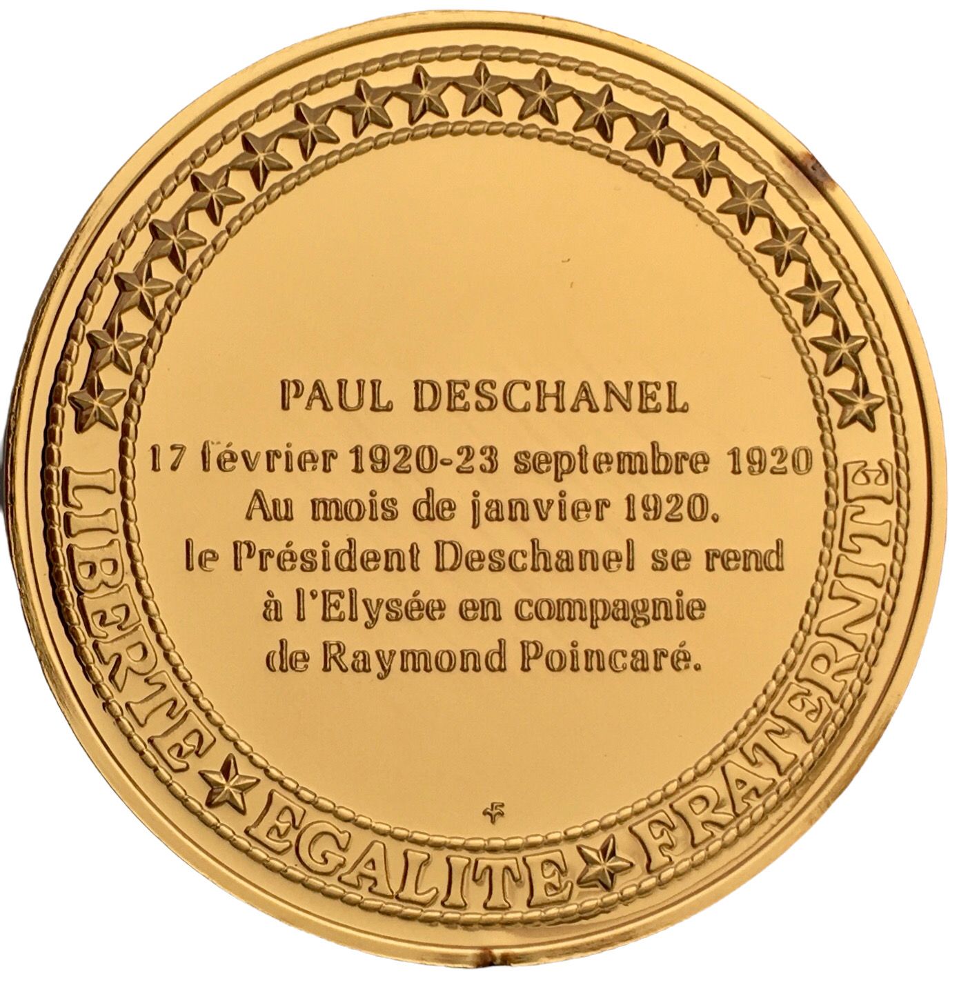 Опис: Центральний текст із датами повноважень президента Французької Республіки, зірки навколо, інший Franklin Mint внизу.