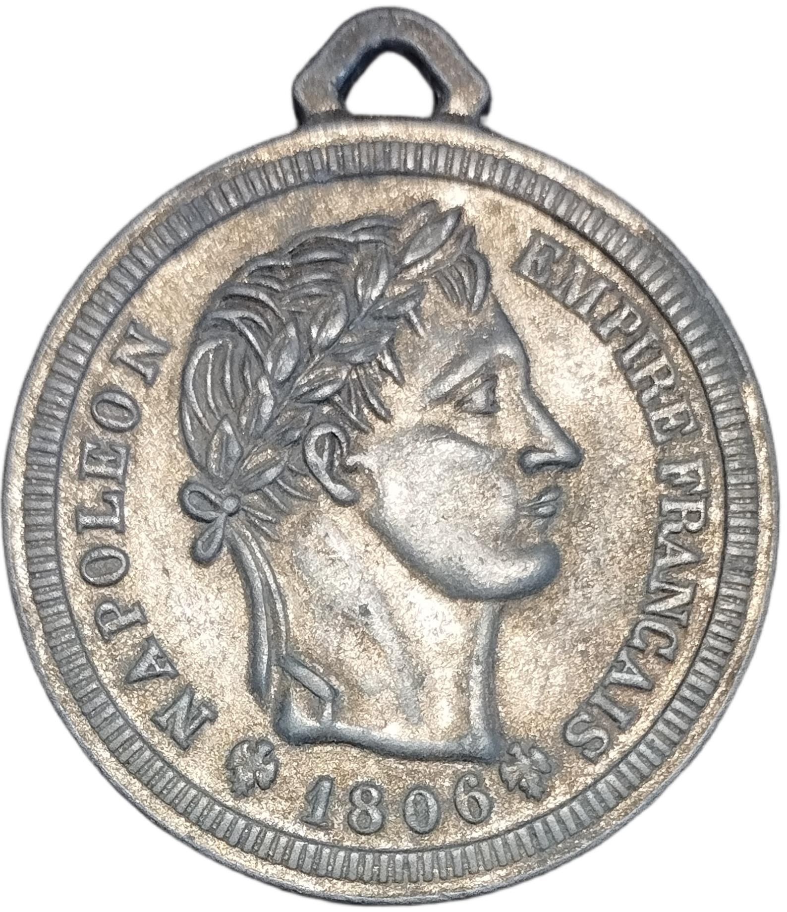 Опис: Наполеон, лавровий вінок праворуч, напис навколо у вигляді смугастого сувою.