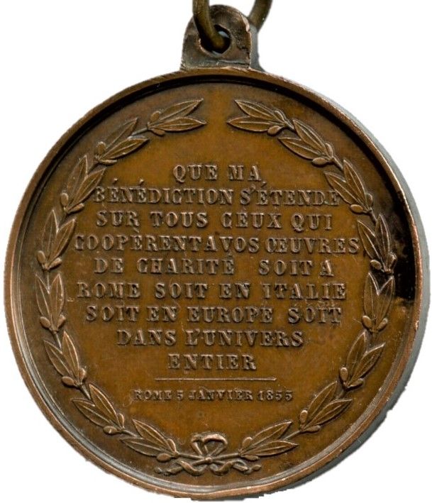 Пій IX — Медаль Товариства Святого Вікентія де Поля, 1855 р.