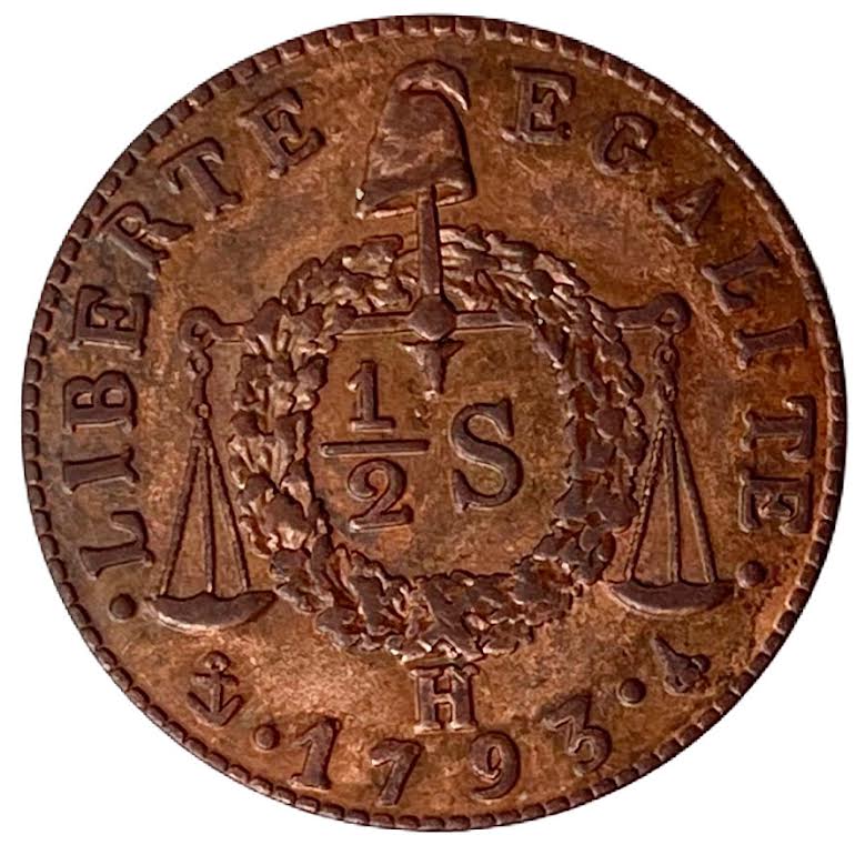 Опис: Ваги, увінчані фригійською шапкою на ціпці, на якій лежить дубовий вінок.