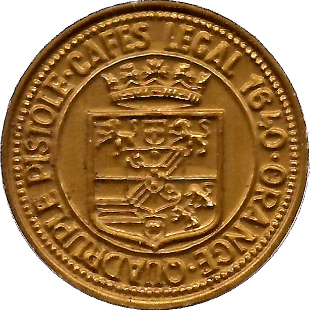 Назва: Жетон — Cafes Legal (Помаранчева чотирипістольна монета 1640 року)