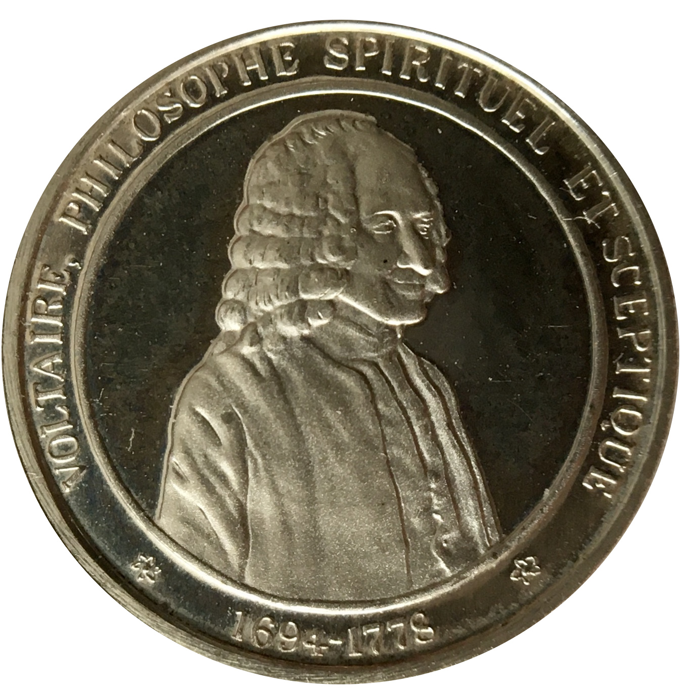 Опис: Портрет Вольтера, письменника та філософа. Дати народження та смерті.
