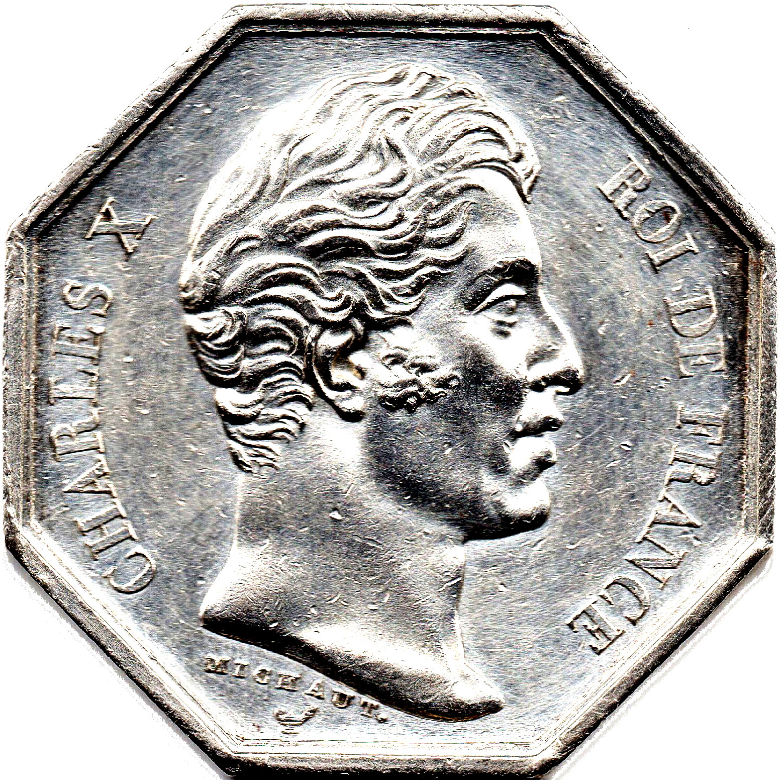 Опис: Портрет короля Карла X у профіль праворуч.