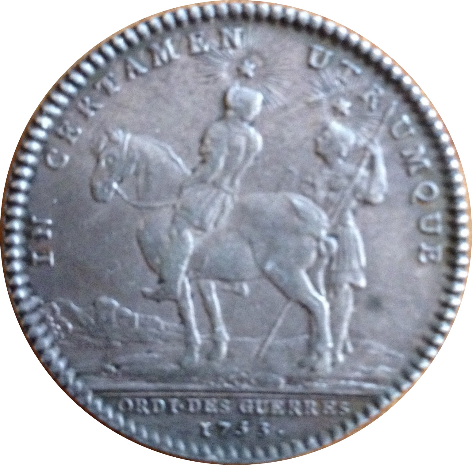 Назва: Токен — Людовик XV — Ordinaire des guerres — In Certamen Utrumque (срібло)