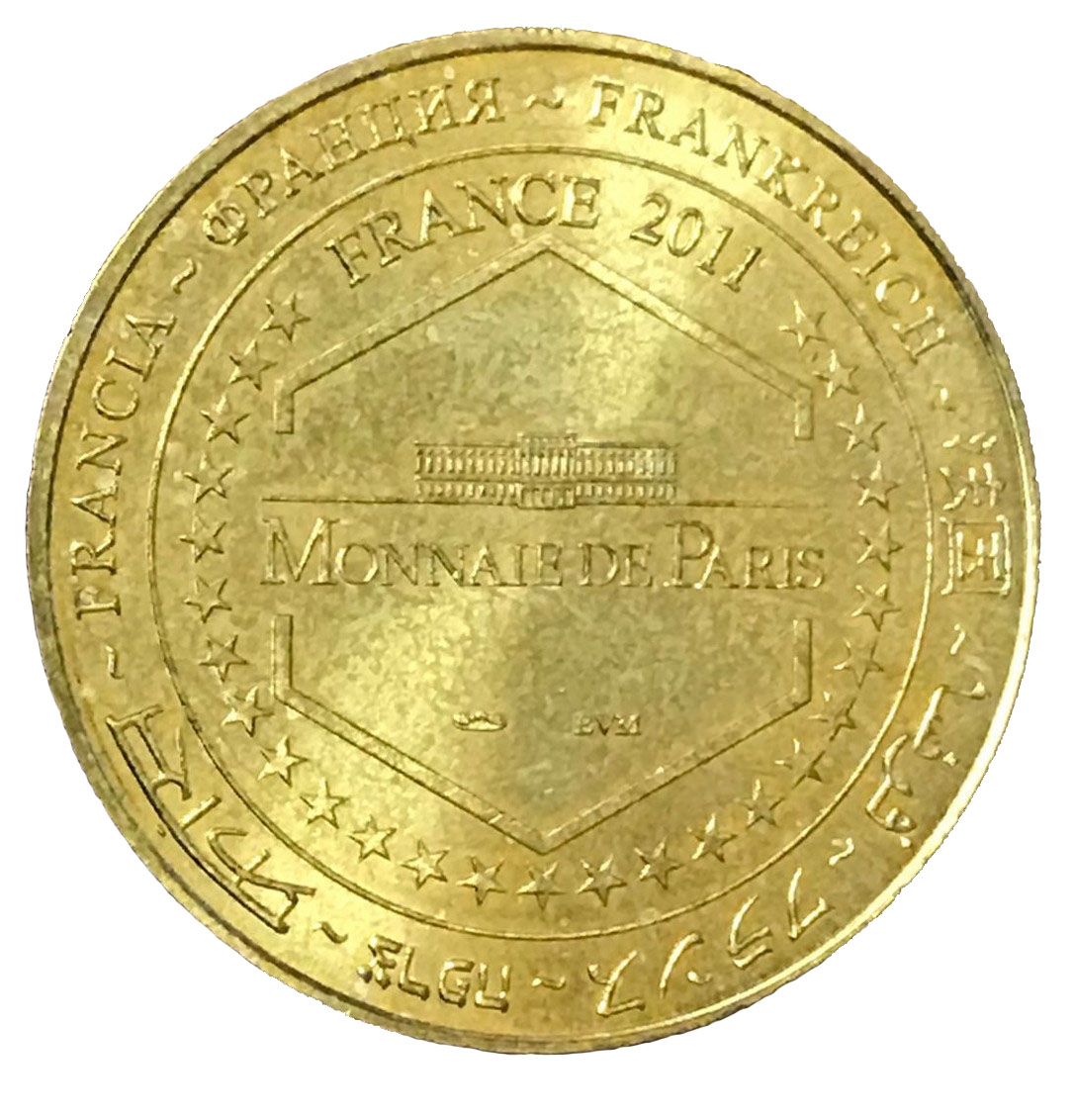 Опис: На периферії слово «Франція» написано вісьмома мовами. Коло, утворене написом «France 2011» на 12-й годині та 27 зірками. У центрі — логотип Monnaie de Paris у шестикутнику.
