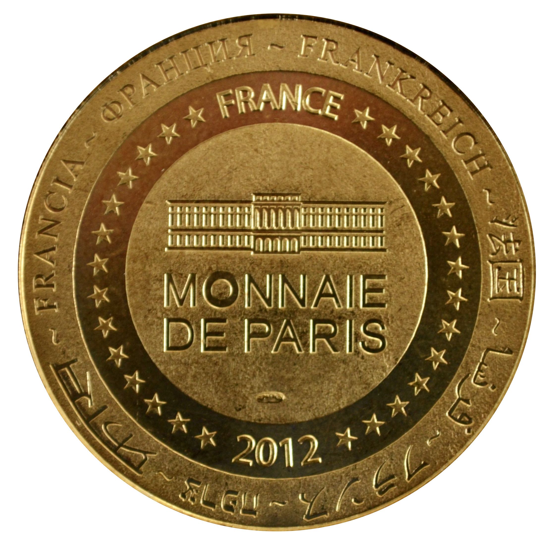 Опис: На периферії слово «Франція» написано вісьмома мовами. Франція на 12-й годині, 2012 рік на 6-й годині, все пов'язане 14 зірками праворуч і ліворуч. У центрі — будівля Monnaie de Paris.