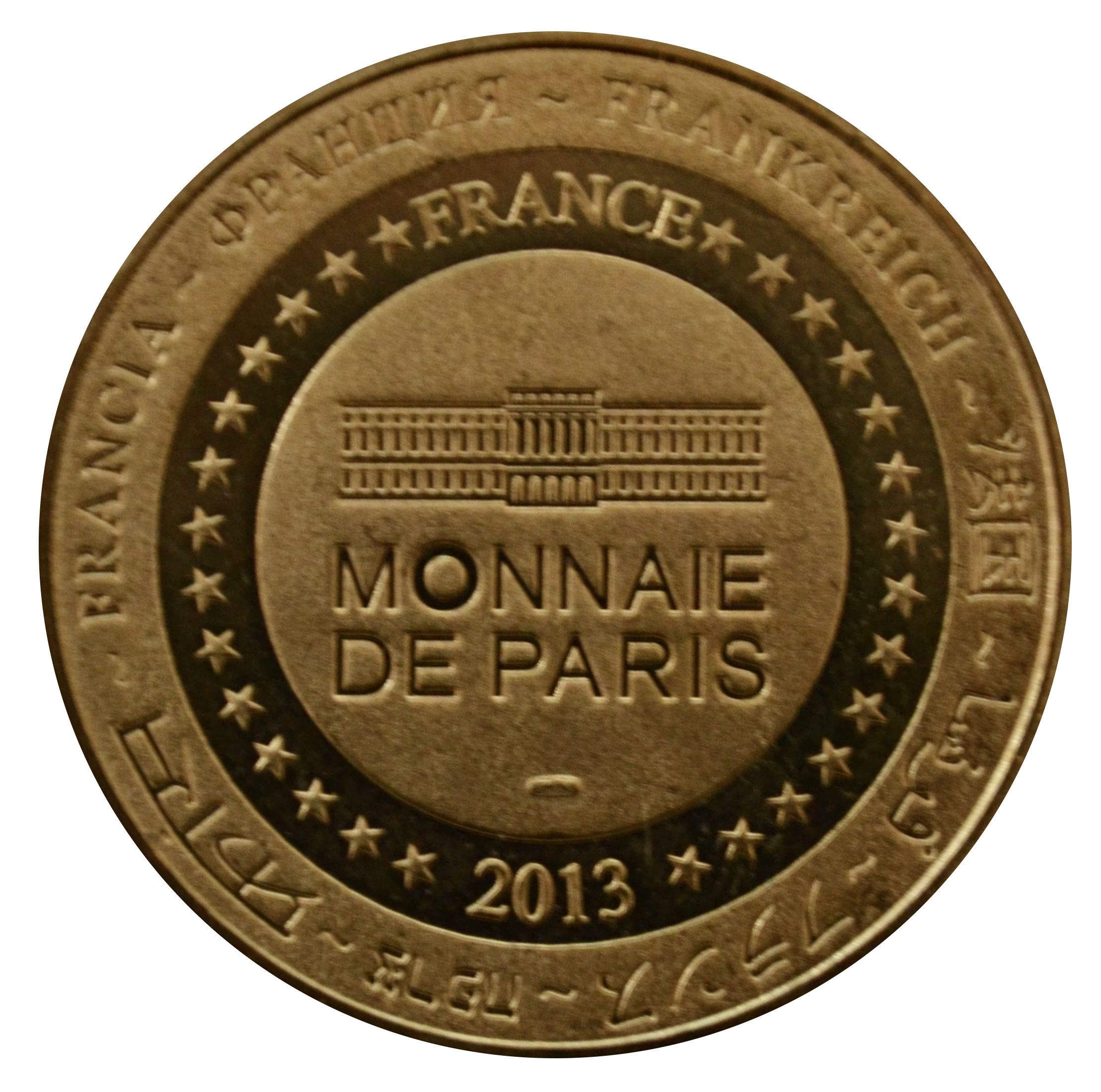 Опис: На периферії слово «Франція» написано вісьмома мовами. Франція на 12-й годині, 2013 рік на 6-й годині, все пов'язане 14 зірками праворуч і ліворуч. У центрі — будівля Монетного двору Парижа.