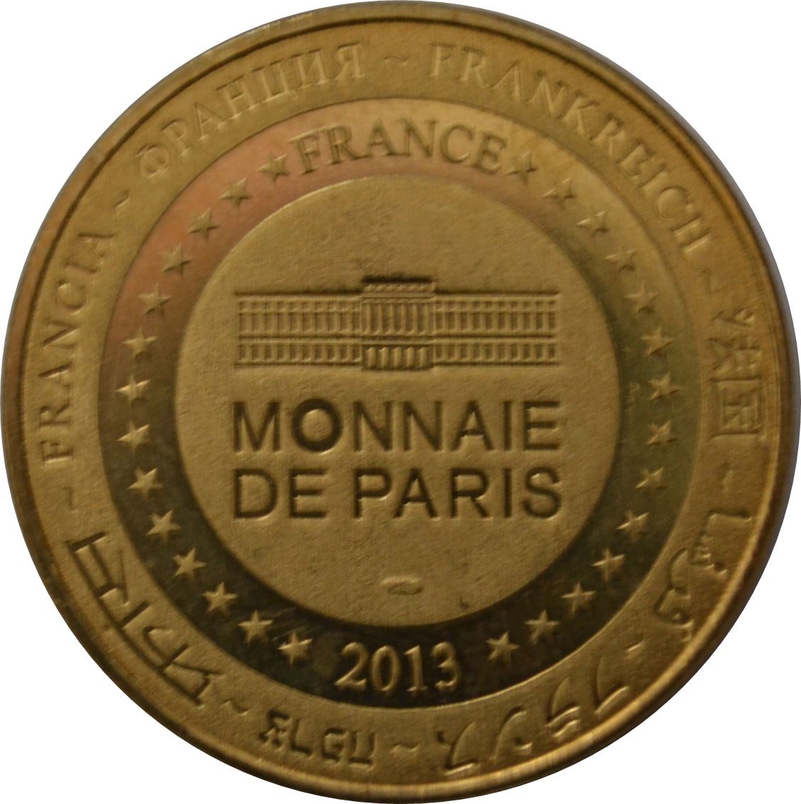 Опис: На периферії слово «Франція» написано вісьмома мовами. Франція на 12-й годині, 2013 рік на 6-й годині, все пов'язане 14 зірками праворуч і ліворуч. У центрі — будівля Монетного двору Парижа.