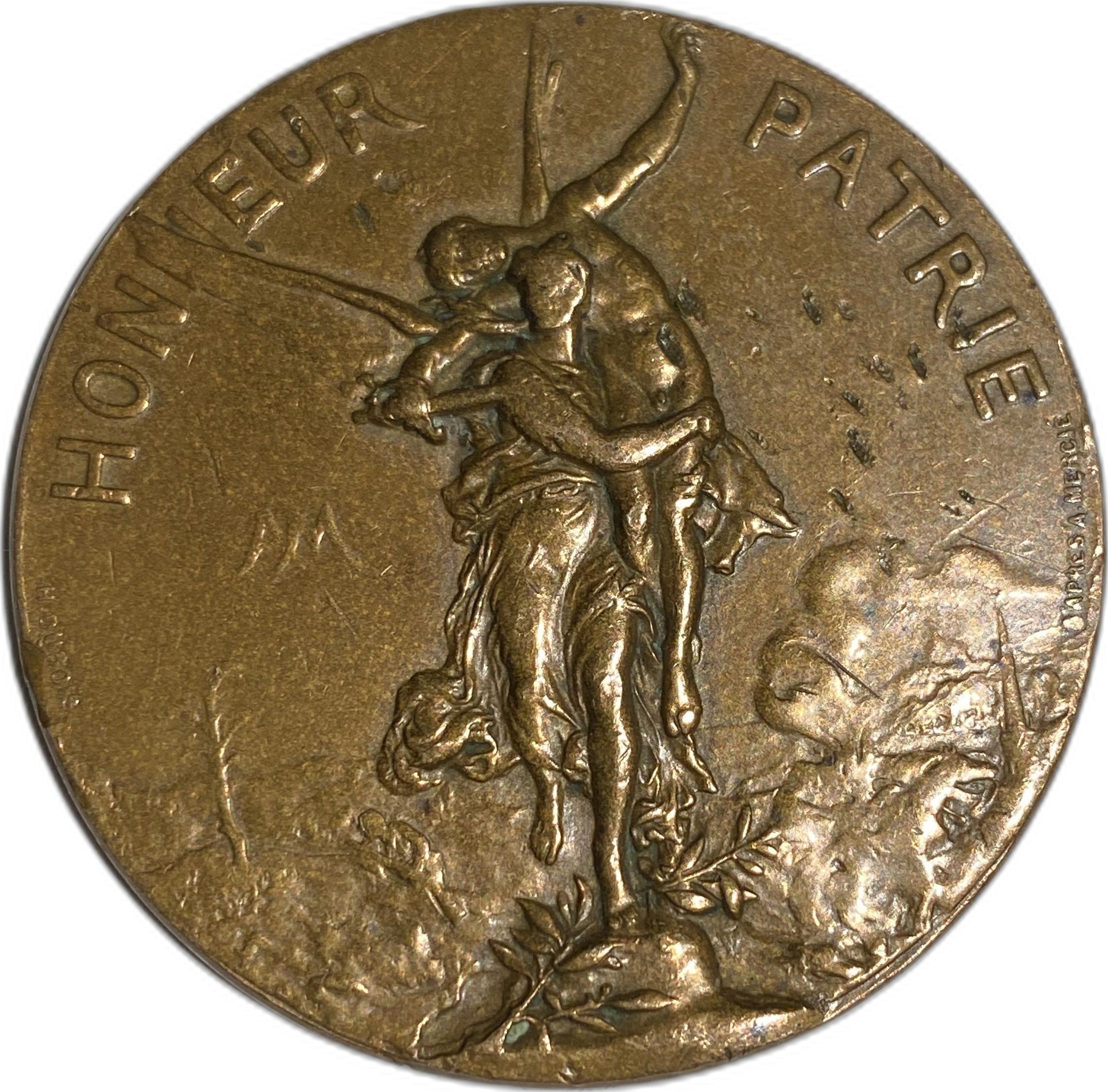 Опис: Нижче зображено два прапорці, оточені лавровим вінком, та рік 1896. Ініціали гравера HD викарбувані в екзергу. Надпис у формі півкола у верхній частині медалі.
