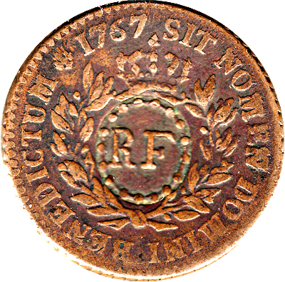 3 солі 9 денаріїв (з надрукованим знаком 12 денаріїв Людовика XV)