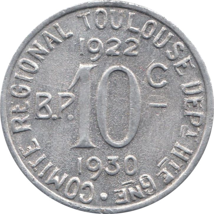 10 сантимів — Comité Régional — Тулуза (Верхня Гаронна) 1922 – 1922 Тулуза, комуна