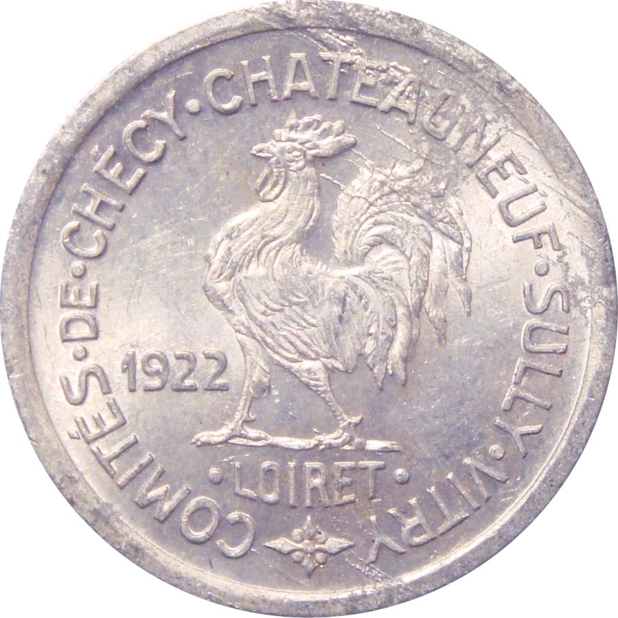 10 сантимів — Шесі, Шатонеф, Сюллі, Вітрі — Луаре 1922 – 1922 Чесі, Шатонеф і Сюллі, комуни