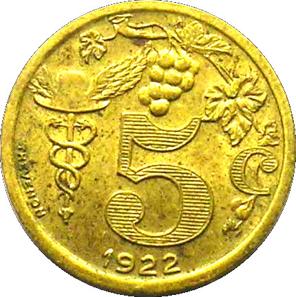 5 сантимів — Union des Commerçants Détaillants — Epernay [51] (латунь) 1922 – 1922 Еперне, комуна