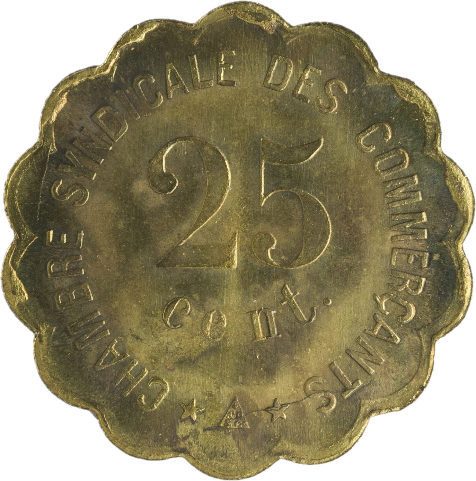 Назва: 25 сантимів — Chambre Syndicale des Commerçants — Перпіньян [66] (латунь)
