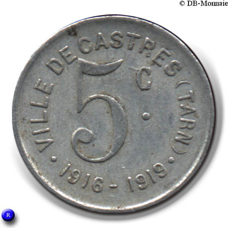 5 сантимів — місто Кастр [81] 1916 – 1916 Кастр, комуна
