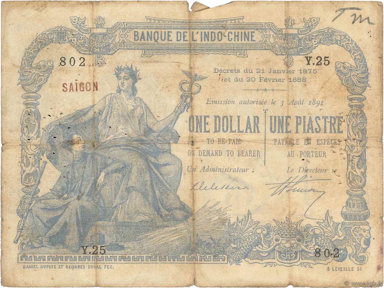 1 долар / 1 піастр — Сайгон 1892 – 1899 Французький Індокитай