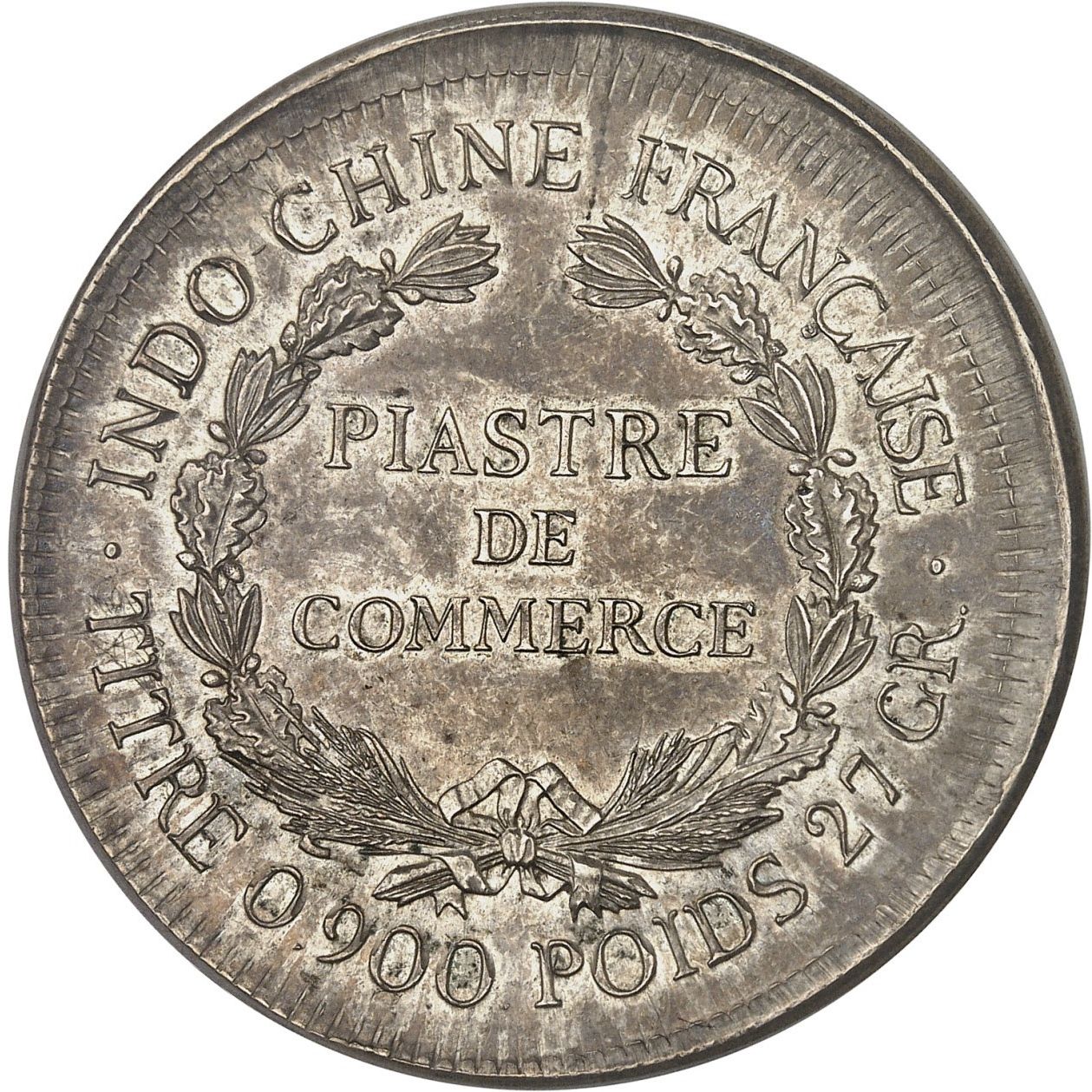 Опис: У короні з двома гілками: PIASTRE DE COMMERCE. Напис зверху та знизу.
