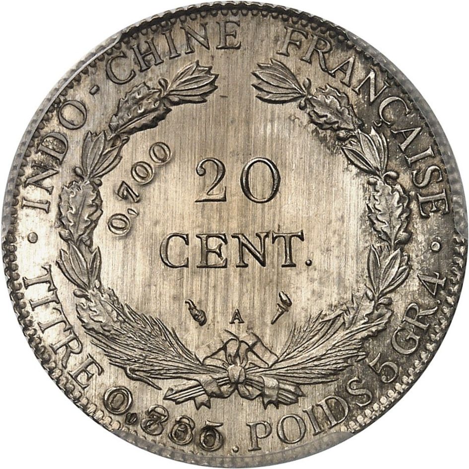 20 центів (зразок; проба металу) 1919 – 1919 Французький Індокитай