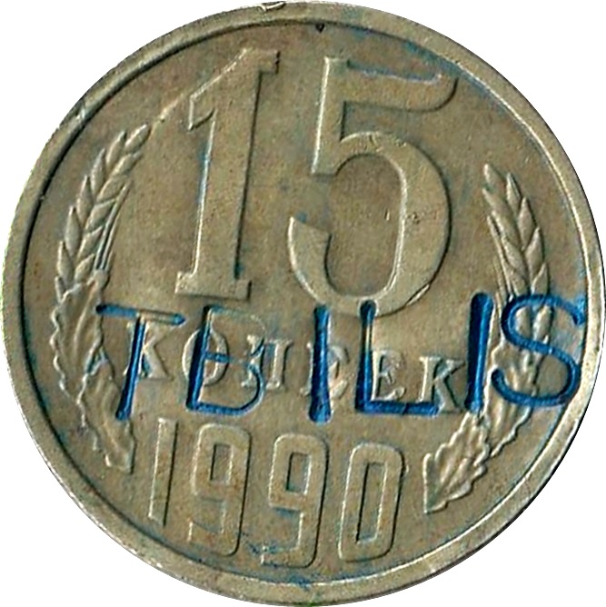 Назва: Жетон камери схову — залізничний вокзал Тбілісі «TBILISI» (викарбувано на монеті СРСР номіналом 15 копійок, Y#131)
