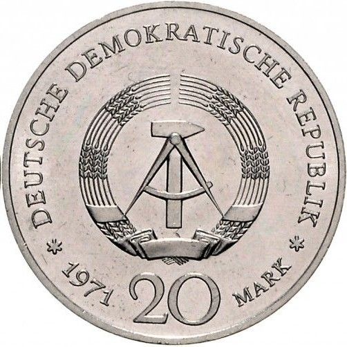 20 марок (Фрідріх фон Шиллер — мул/зразок) 1972 – 1972 Німецька Демократична Республіка