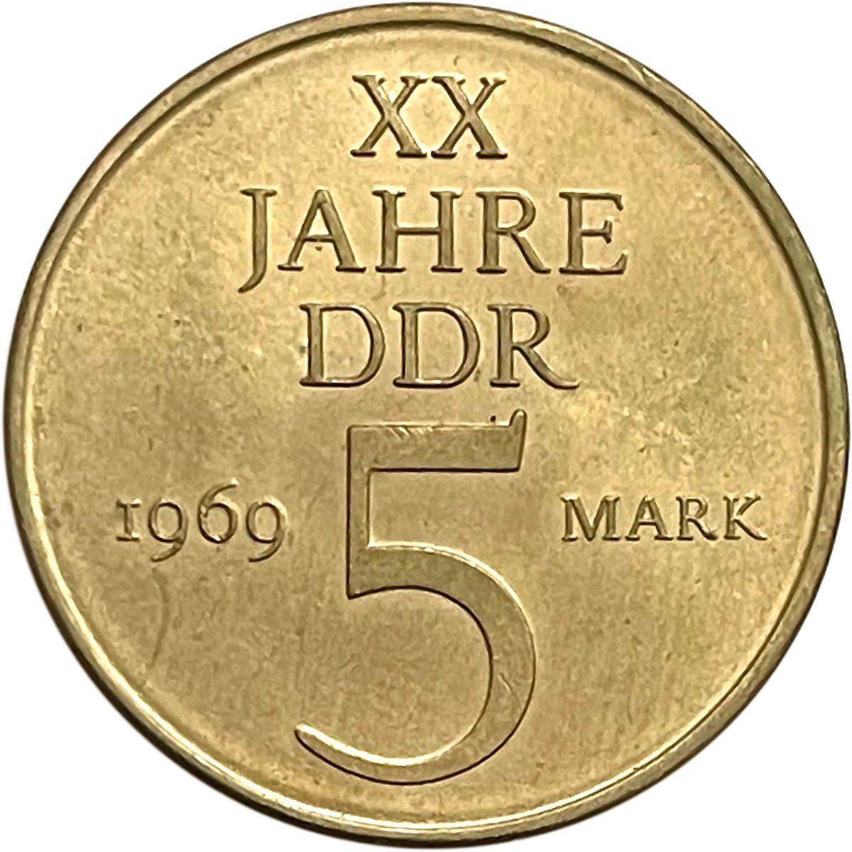 5 марок — 20 років НДР (нікелева бронза) 1969 – 1969 Німецька Демократична Республіка