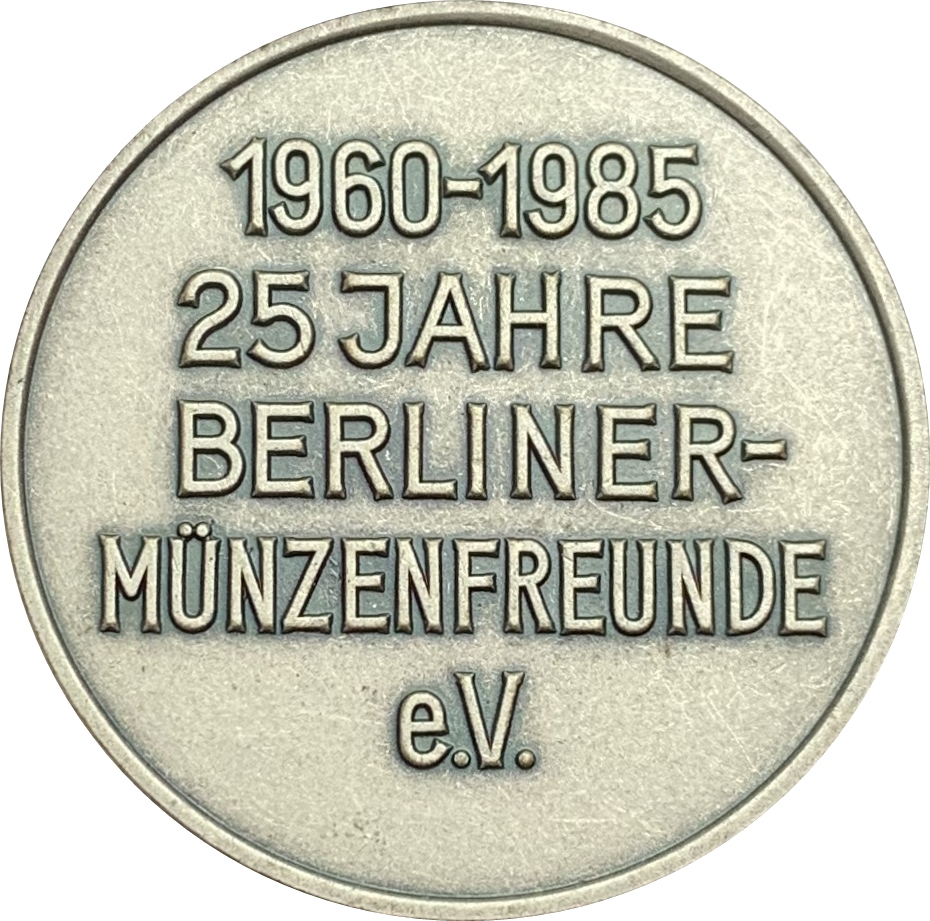 Медаль — 25-річчя нумізматичного клубу «Berliner Münzenfreunde e.V.». 1985 – 1985 Німецька Демократична Республіка