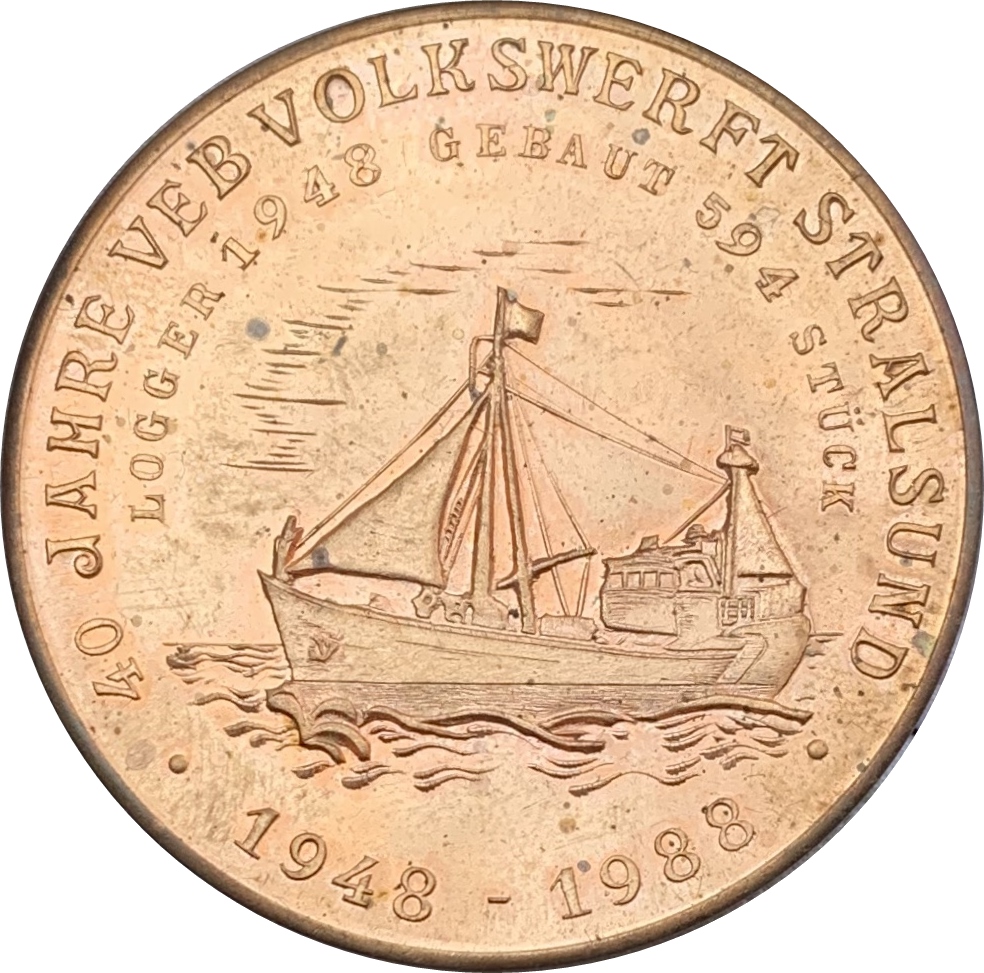 Медаль — 40-річчя суднобудівного заводу VEB у Штральзунді 1988 – 1988 Німецька Демократична Республіка
