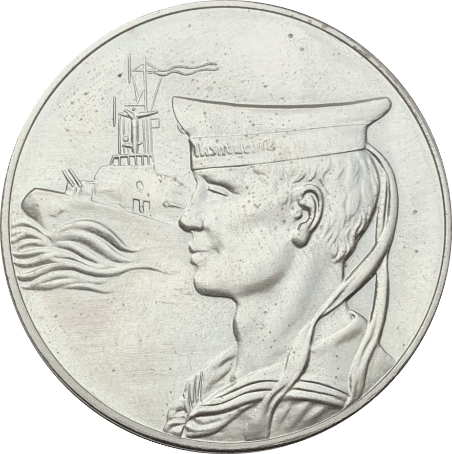 Опис: Бюст у капелюсі, звернений ліворуч, військовий корабель ліворуч.