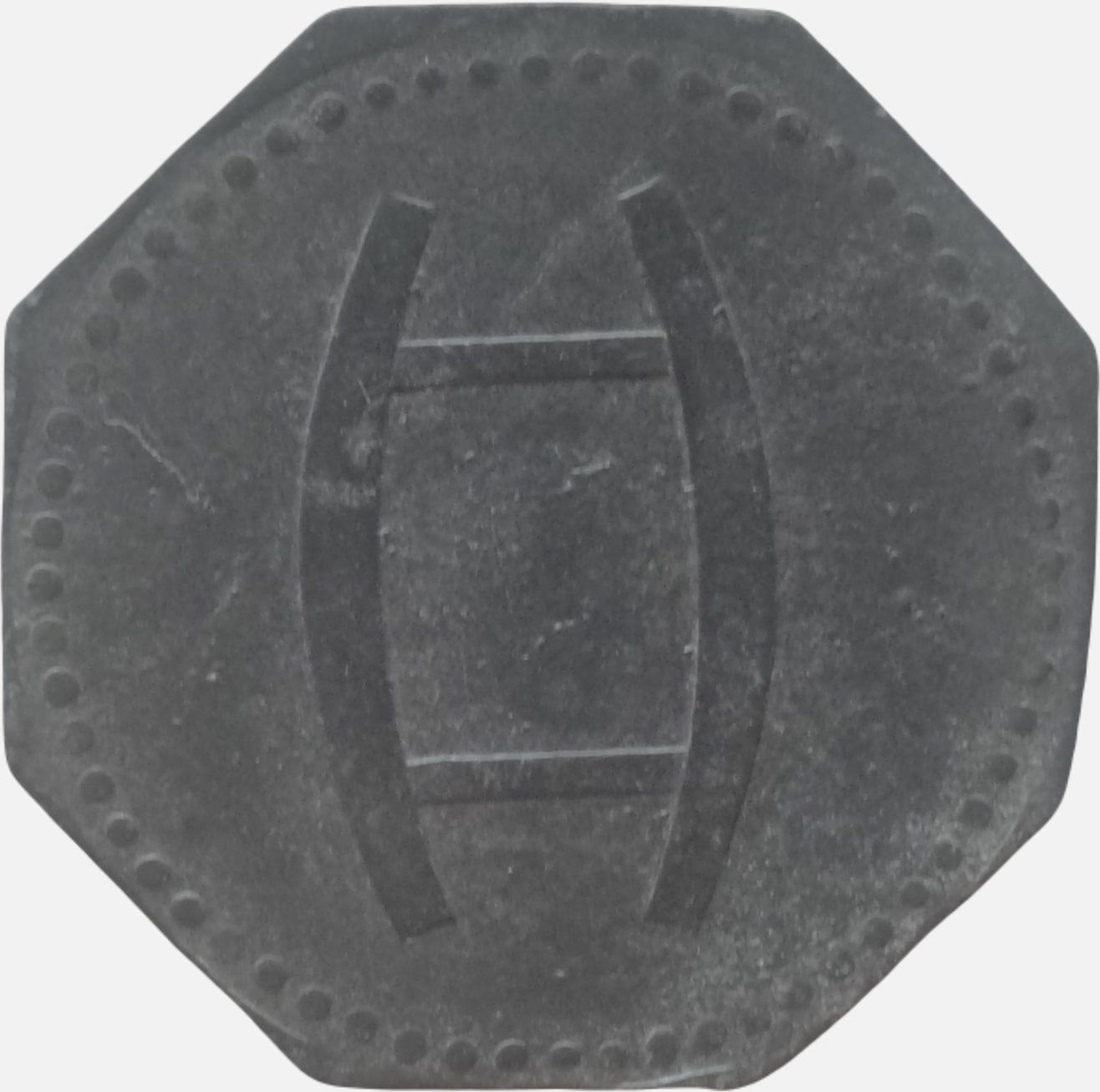 Опис: Перламутровий обідок навколо зображення винопровідника (використовується для транспортування або переміщення бочок з вином), без написів.