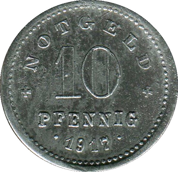 10 пфеннігів — Кельхайм а. Д. (Край: рифлений) 1917 – 1917 Кельхайм-ан-дер-Донау, місто