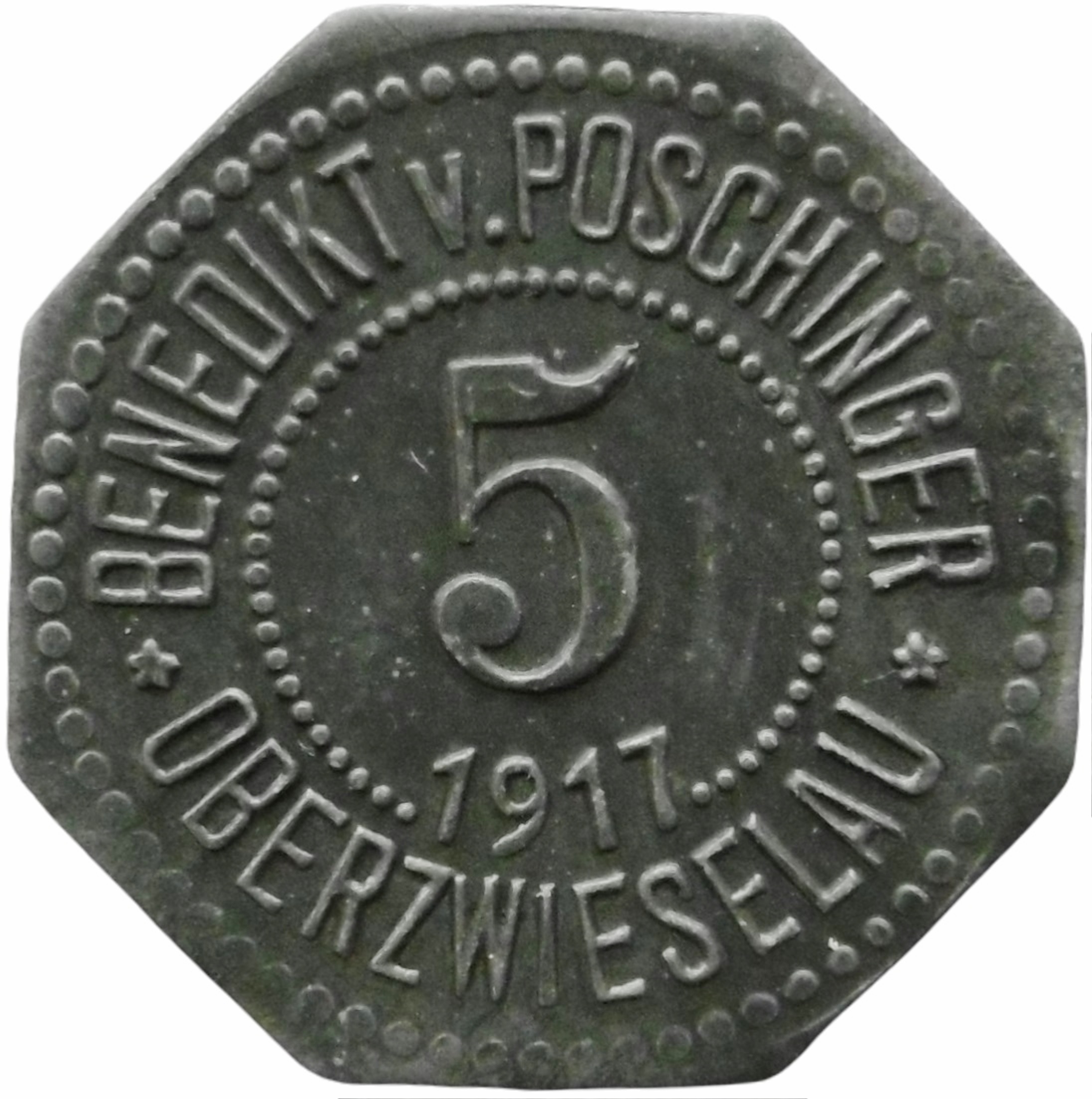 5 пфеннігів — Оберцвізелау (Бенедикт фон Пошінгер) 1917 – 1917 Оберцвізелау, муніципалітет