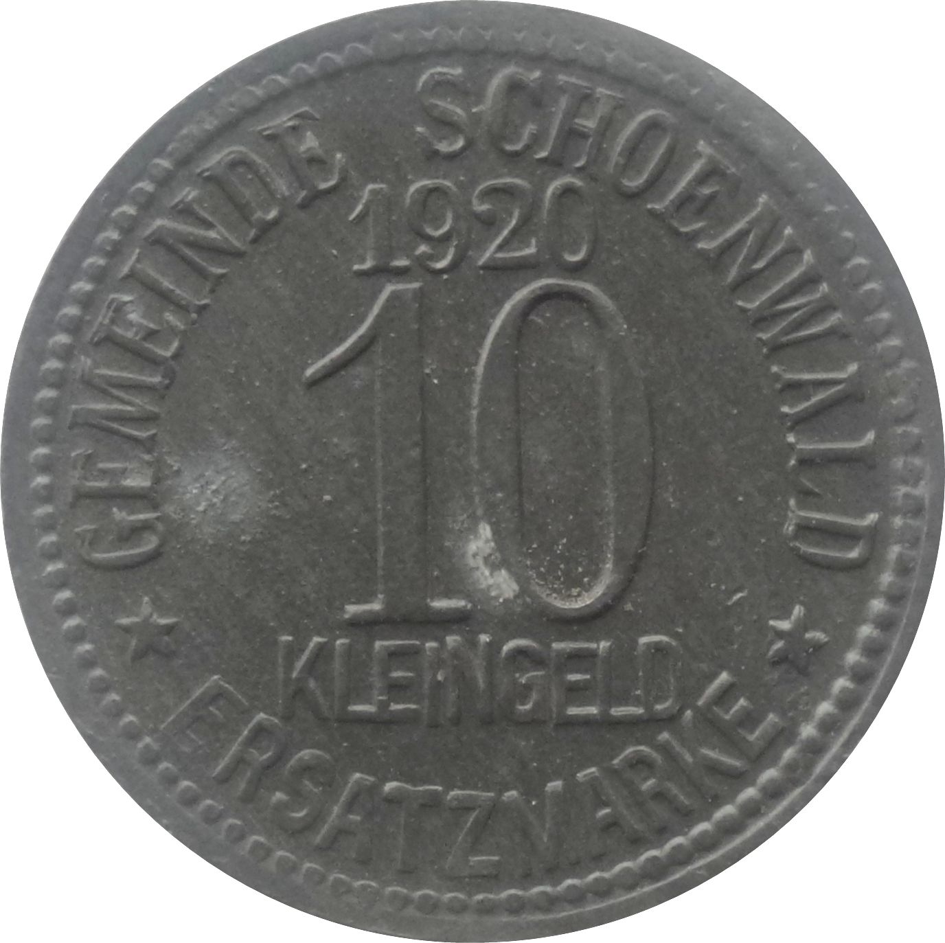 10 пфеннігів — Шенвальд 1920 – 1920 Шенвальд, муніципалітет