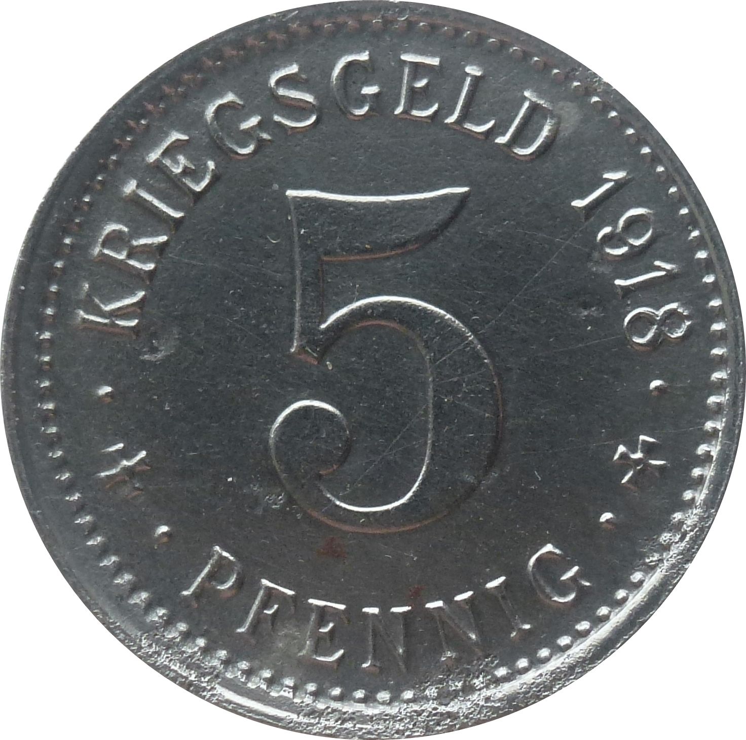 5 пфеннігів — Тройхтлінген 1918 – 1918 Треутлінген, місто