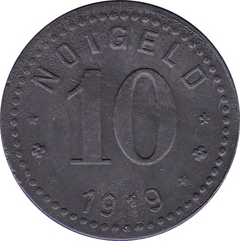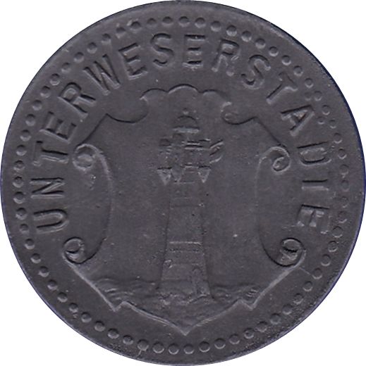 10 пфеннігів — Унтервезерштадте 1919 – 1919 Бремерхафен, Лехе та Гестемюнде, міста