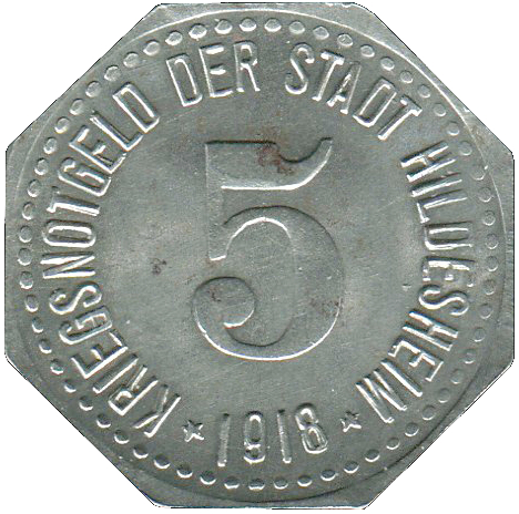 5 пфеннігів — Гільдесгайм 1918 – 1918 Гільдесгайм, місто