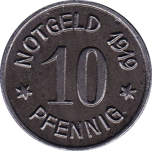 10 пфеннігів — Бінген-на-Рейні 1919 – 1919 Бінген, місто